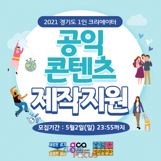 경기도와 경기콘텐츠진흥원은 5월 2일까지 '2021 경기도 1인 크리에이터 공익 콘텐츠 제작 지원' 참가자를 모집한다고 2일 밝혔다.
