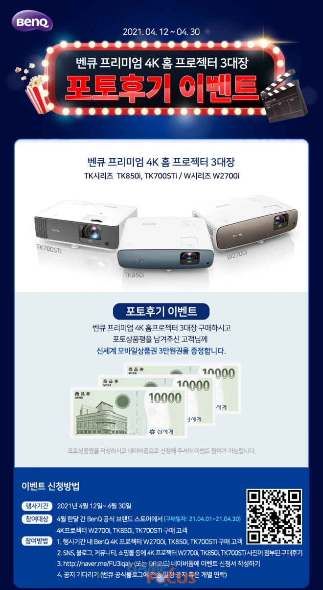 벤큐(지사장 소윤석)가 자사 4K 빔프로젝터, LED 스탠드를 구입하고 포토후기를 남긴 고객을 대상으로 상품권을 사은품으로 증정하는 포토후기 이벤트를 진행한다.