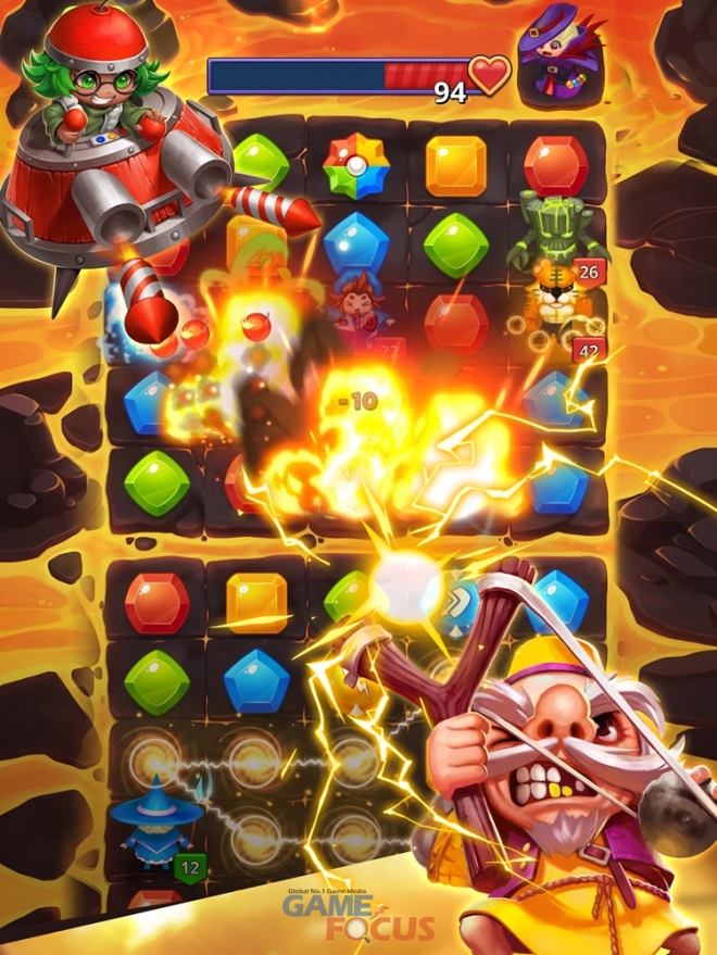 특히, 퍼즐 영역을 공유하는 대결이 단연 백미다. 퍼즐이 제거되면 중앙의 기준선을 넘어 비어 있는 영역으로 퍼즐이나 용병이 이동하며 이 때문에 상대방의 용병이 나의 영역으로 영입되기도 한다.