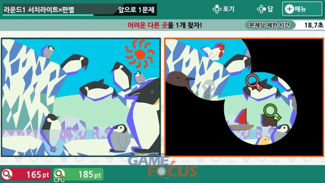 본 작품은 재빠르게 다른 곳을 찾는 '상쾌 모드', 다 함께 다른 곳을 찾는 '파티 모드', 차분하게 다른 곳을 찾는 '집중 모드'의 총 세 가지 모드가 포함되어, 혼자서도 여럿이도 틀린 그림 찾기로 즐겁게 우뇌를 자극할 수 있는 틀린 그림 찾기 액션 게임이다.