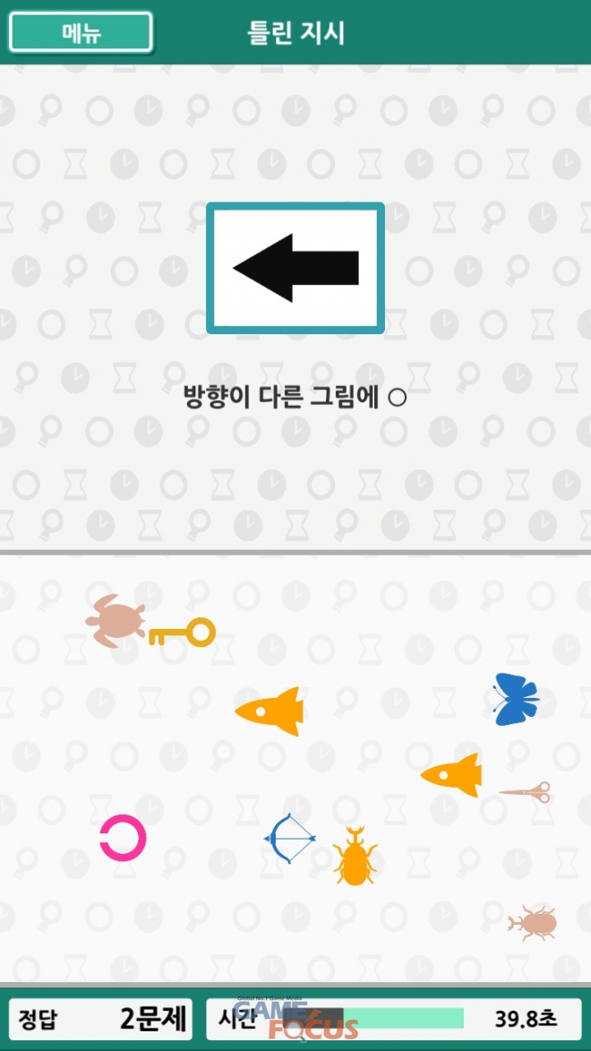 표시되는 방향을 향하고 있지 않은 그림을 찾는다