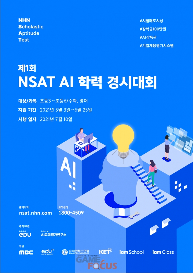 'NHN에듀(공동대표 진은숙, 여원동)'가 AI 감독관이 도입된 '제1회 NSAT AI 학력 경시대회(이하 AI 학력 경시대회)'를 7월 10일 개최한다.