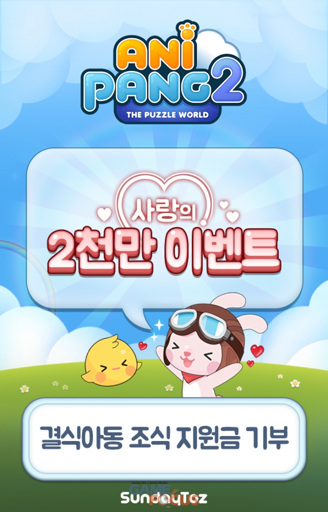 선데이토즈(대표 김정섭)가 '애니팡2', '애니팡3' 게임 이용자들과 사회공헌 이벤트를 진행한다.