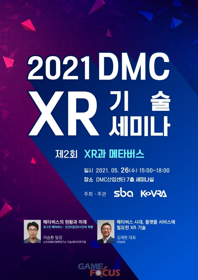 서울산업진흥원(대표 장영승, SBA)와 한국가상증강현실산업협회(협회장 신수정, 이하 협회)가 함께 주최하는 '2021년 제2회 DMC XR 기술 세미나'가 26일(수) 오후 3시 상암동 DMC 첨단산업센터에서 개최된다.