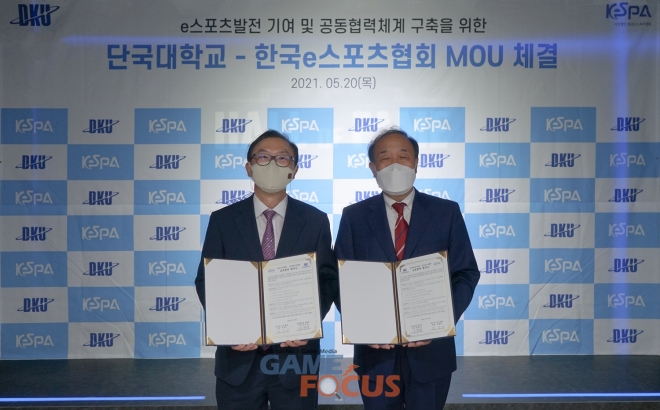 단국대학교와 한국e스포츠협회가 20일(목) e스포츠 명예의 전당에서 상호간 e스포츠 교육 발전 및 공동 협력 관계 구축을 위한 산학업무협약을 맺었다.