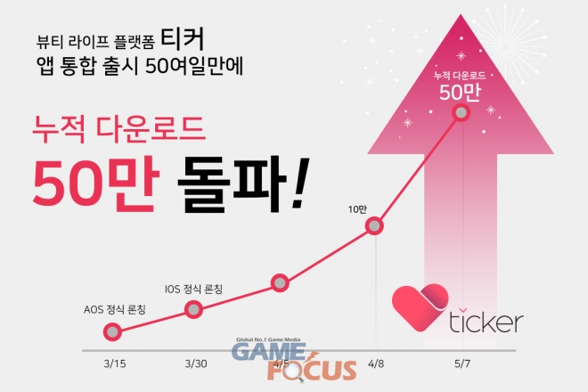 타키온비앤티(타키온B&T)의 뷰티 라이프 플랫폼 '티커(Ticker)'가 통합 출시 50여일 만에 누적 다운로드 수 50만 건을 달성했다.