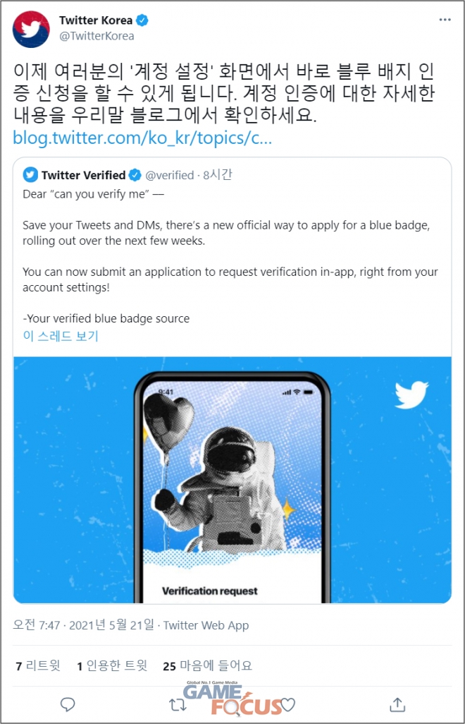 트위터는 “인증 배지는 트위터 이용자들이 보다 쉽게 대중의 관심이 높은 계정의 진위 여부를 구별하도록 돕는 방법 중 하나다”며 “인증된 계정을 통해 신뢰할 수 있는 정보를 제공하고, 트위터에서 건전한 공공 대화가 활성화되길 기대한다”고 밝혔다.