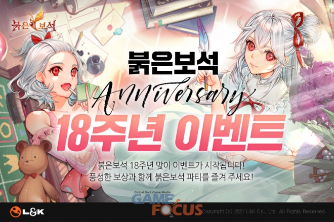 엘엔케이로직코리아(대표 남택원, 이하 엘엔케이)가 오는 5월 30일(일) '붉은보석'의 한국 서비스 18주년을 기념해 5월 26일(수)부터 총 5주간 '붉은보석 18주년 기념 이벤트 대축제'를 진행한다.