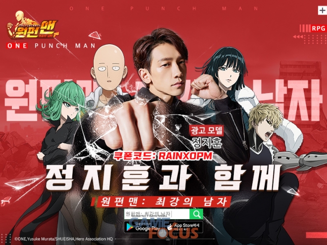 GAMENOW(GAMENOW TECHNOLOGY LIMITED)가 자사가 서비스 중인 전략형 RPG '원펀맨: 최강의 남자'에서 비(정지훈)와 함께한 공식 PV 영상을 공개했다.