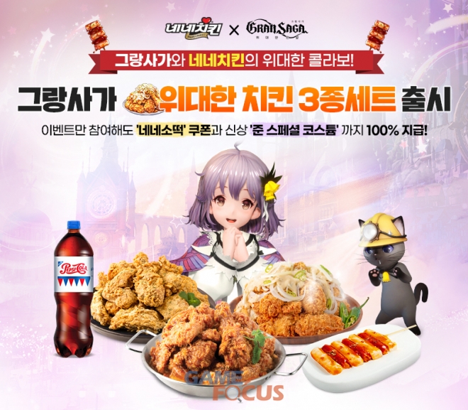 이번 제휴를 통해 네네치킨의 대표 메뉴와 '그랑사가'의 인기 캐릭터를 활용한 '그랑사가 위대한 치킨 세트' 3종을 선보이며, 오는 7월 2일까지 전국 네네치킨 매장 및 배달앱 등을 통해 주문할 수 있다.