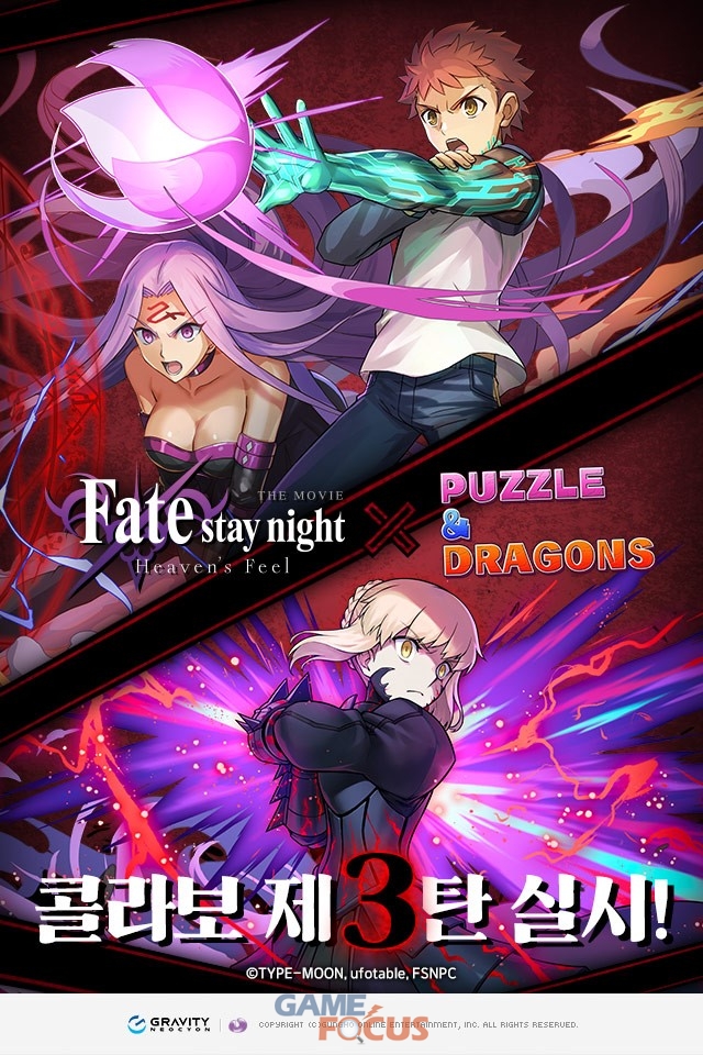 겅호 온라인 엔터테인먼트에서 개발하고 그라비티의 자회사 그라비티 네오싸이언이 서비스 중인 모바일 퍼즐게임 ‘퍼즐앤드래곤’이 14일, 극장판 애니메이션 ‘Fate/stay night [HF]’와 3번째 콜라보레이션을 진행한다.
