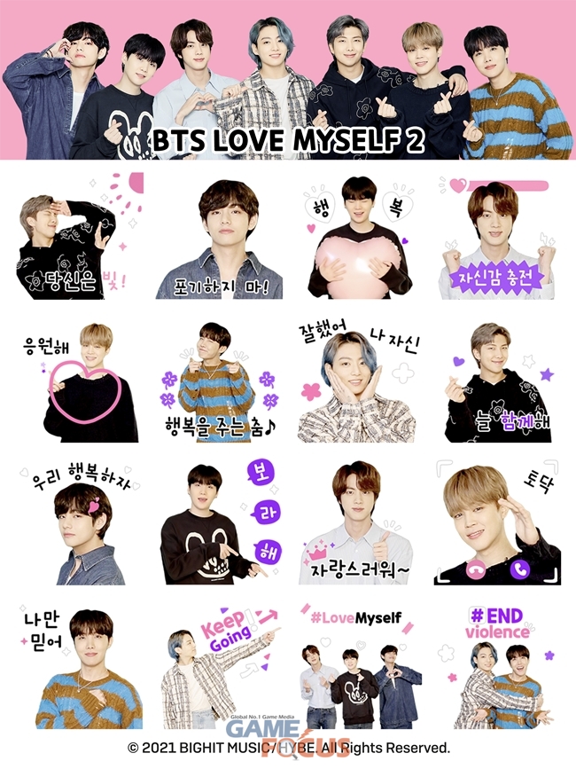 방탄소년단을 실제 촬영한 모습 24종으로 구성되어 있으며, 이모티콘 스토어에서 'BTS, LOVE MYSELF 2'를 검색해 구매할 수 있다. 카카오는 15일부터 7월 12일까지 4주간 기브티콘이 판매될 때마다 300원씩 기부한다. 4주 후에도 기브티콘 판매는 지속되며, 방탄소년단은 이번 기브티콘을 통해 얻는 모든 수익을 기부할 예정이다.
