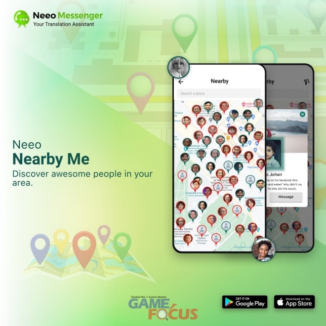 니오메신저의 니어바이(NEARBY) 기능은 근처의 새로운 친구를 찾아볼 수 있다. 한번의 클릭으로 쉽고 빠르게 친구를 만들 수 있고, 다양한 사람들을 만나고 폭넓은 경험을 할 수 있다. 니오소셜(NEEO SOCIAL) 기능은 전 세계 사람들과 소통할 수 있다. 사진과 영상을 SNS에 포스팅 할 수 있고, 틱톡 기능과 다양한 효과로 원하는 모습을 표현할 수 있으며, 최신트렌드를 니오 소셜로 확인할 수도 있다.