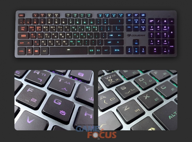 COUGAR VANTAR AX는 CNC 알루미늄 바디의 견고함에 샌드 블라스트 가공이 더해진 하우징 구성으로 더욱 고급스럽고 세련된 느낌을 전달한다. 또한, 시저(Scissors) 타입으로 설계된 키보드의 특징인 15mm 두께의 초슬림 설계에 2단계 높이 조절로 편안한 손목 각도로 부드럽게 타이핑할 수 있는 포지션을 제공한다.