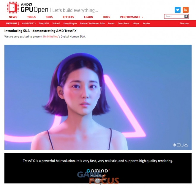 넵튠의 자회사이자 버추얼휴먼 ‘수아’ 개발사 ㈜온마인드는 21일, 나스닥 상장 기업 AMD의 AMD 트레스FX(AMD TressFX) 기술 협업을 진행한다고 밝혔다.