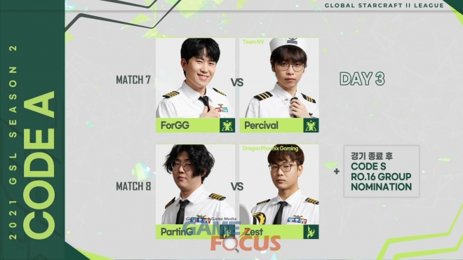 코드A에서 선발된 8명의 선수는 ‘2021 GSL 시즌1’에서 시드를 획득한 이병렬(Rogue), 조성주(Maru), 조중혁(Dream), 조성호(Trap) 그리고 예선전을 상위권으로 통과한 강민수(Solar), 이재선(Bunny), 이신형(INnoVation), 박한솔(Zoun) 등 8명의 선수와 합류해 코드S 16강전을 펼칠 예정이다.