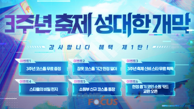 3주년 축제 개막이 임박한 가운데, 다양한 혜택을 제공하는 이벤트가 준비되어 있다.