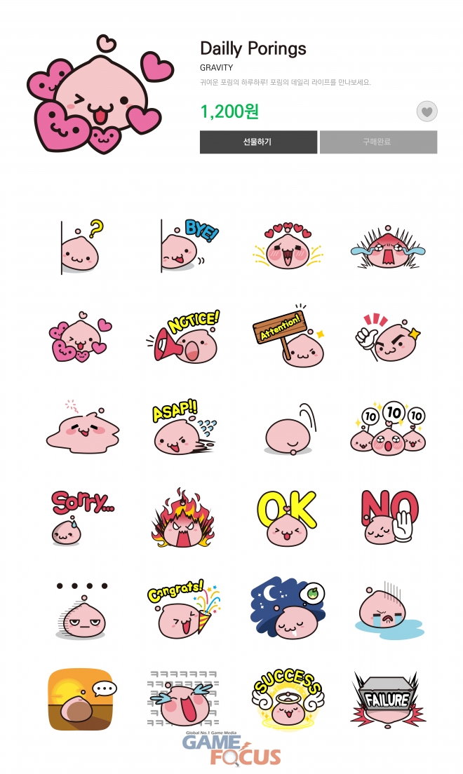 그라비티가 6월 25일 '라그나로크'의 대표 몬스터 포링을 활용한 LINE 이모티콘 2탄 '데일리 포링'을 전격 출시했다.