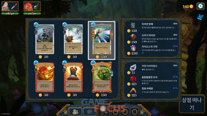 - 다양한 만남: 상인, 여행자, 폐허, 퀘스트 등 수많은 기회 속에서 카드와 유물을 획득하자. 때로는 함정에 빠질 수도 있다.