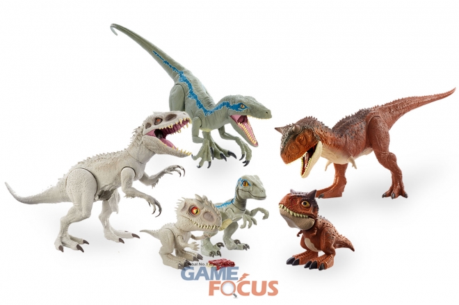 쥬라기월드의 대표 아이콘 중 하나로 인간과 교감을 나누는 '벨로시랩터 블루'와 유전자 조작으로 만들어진 거대하고 포악한 공룡 '인도미누스 렉스' 등 거대한 슈퍼 자이언트 버전의 공룡들이 베이비 버전으로 잇달아 출시되며 인기를 얻고 있다.