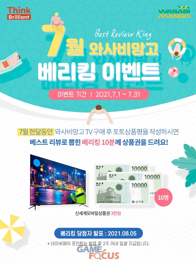 와사비망고(대표 김환준)가 7월 자사 제품 구매자 대상 베리킹(베스트 리뷰왕) 행사를 진행한다.