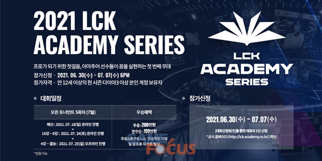 e스포츠 프로 지망생들을 위한 무대 '2021 LCK 아카데미 시리즈(LCK Academy Series)'가 하반기 첫번째 오픈토너먼트 참가신청 접수를 30일부터 시작했다.