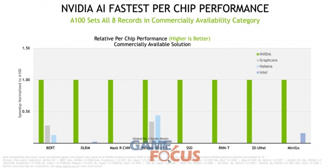 엔비디아(CEO 젠슨 황)가 자사의 파트너사인 델(Dell), 후지쯔(Fujitsu), 기가바이트(GIGABYTE), 인스퍼(Inspur), 레노버(Lenovo), 네트릭스(Nettrix), 슈퍼마이크로(Supermicro)가 A100 텐서 코어(Tensor Core) GPU를 통해 MLPerf 벤치마크 테스트에서 업계 최고의 결과를 기록했다고 밝혔다.