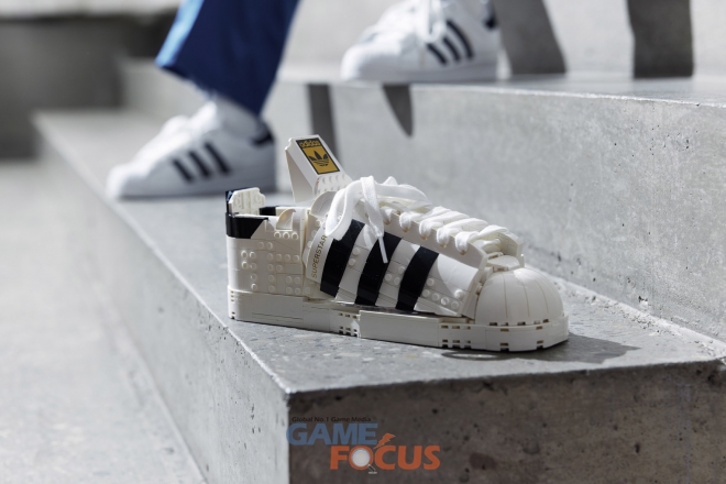 이번 제품은 아디다스 오리지널스의 대표 아이콘인 슈퍼스타를 총 731개의 브릭으로 재현했다. 삼선 문양과 쉘토 디자인, 불꽃모양 트레포일 로고 등 슈퍼스타의 상징적인 디테일을 완벽하게 표현했다. 신발 내부에는 실제 운동화와 동일한 위치에 아디다스 오리지널스 로고와 태그가 인쇄돼 있다.
