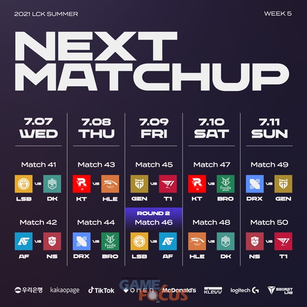 KT 롤스터는 나란히 3승 5패를 기록하고 있는 한화생명e스포츠와 프레딧 브리온을 상대한다. 한화생명e스포츠는 4주 차에서 2연승을 거두면서 분위기를 끌어 올린 상태이기에 쉽지 않아 보인다. 지난 1라운드에서 프레딧 브리온을 상대로 2대0으로 깔끔하게 승리했던 KT 입장에서는 한화생명e스포츠를 넘어설 경우 연승도 노려볼 만하다.