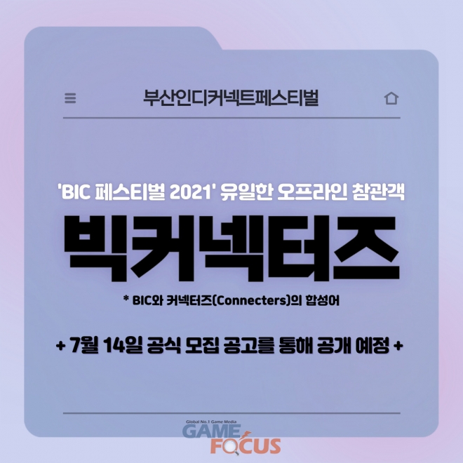 '빅커넥터즈'는 BIC와 인디게임을 사랑하는 14세 이상이라면 BIC 페스티벌 공식 홈페이지를 통해 누구나 지원할 수 있다. BIC 조직위는 서류 전형을 거쳐 8월 4일 300명 내외의 인원을 선발할 계획으로, 크루 활동은 온오프라인에서 약 1개월 동안 진행된다.