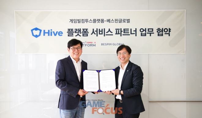 게임빌(대표 이용국)의 플랫폼 자회사인 게임빌컴투스플랫폼(대표 송재준)이 클라우드 딜리버리 플랫폼 기업 베스핀글로벌(대표 이한주)과 '하이브(Hive)' 플랫폼 서비스 확대를 위해 파트너 업무 협약을 체결했다고 8일 밝혔다.