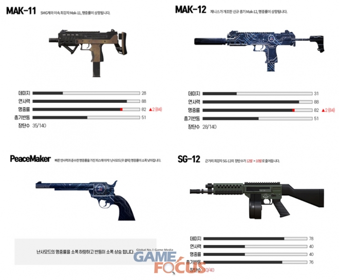 기존 무기들의 밸런스를 대폭 조정했다. 'M4A1', 'MAK-11', 'MAK-12'의 명중률을 상향하고, 'DUAL MP7'의 이동속도를 약 20% 증가시켜 답답함을 해소했다. 또, 'G18' 3점사 모드의 총기반동을 하향하고 'M249'의 명중률을 높이고 총기반동을 줄였다.