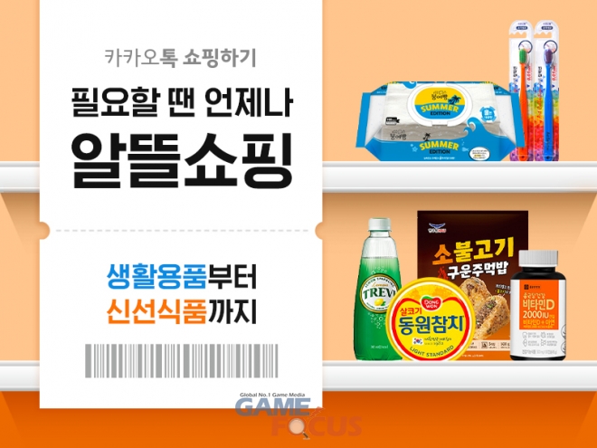 '필요할 땐 언제나, 알뜰쇼핑'은 카카오톡 쇼핑하기 내 판매되는 생필품 중 재구매 건수가 높은 식품/리빙 카테고리 상위 200여개 상품을 선정해 저렴하게 판매하는 기획전이다.