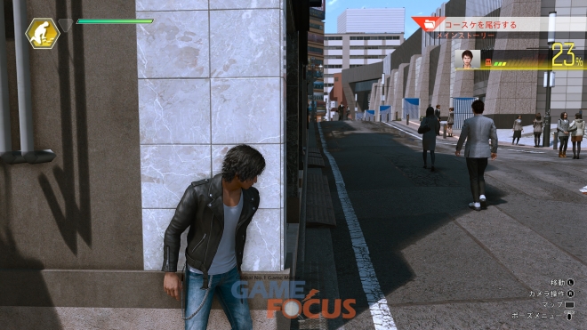 조사의 목표물이 되는 인물의 행동을 밝혀내기 위해 필요한 탐정의 기본 행동이 '미행'. 주위 환경에 조화되어, 상대가 경계를 해제하게 만드는 신 액션 '눈속임 액션'을 잘 이용하여 타겟의 눈을 속이자.