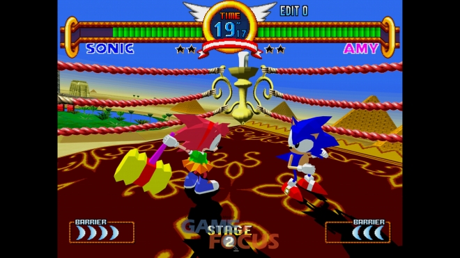 이번 작품에서는 왕년의 명작 아케이드 게임 '소닉 더 파이터즈'를 플레이할 수 있다! 소닉 시리즈의 캐릭터를 조작하여 뜨거운 배틀을 펼치자.