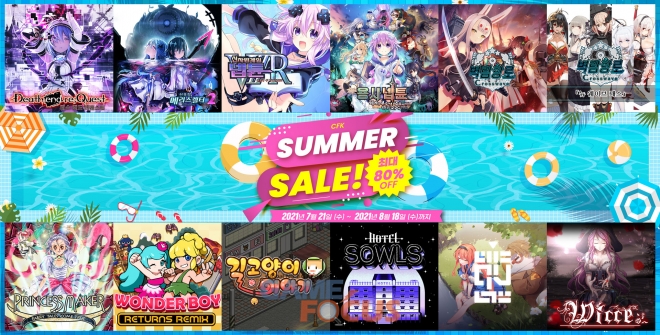 CFK는 여름 맞이 'SUMMER SALE'을 진행한다. 이번 세일은 PlayStation 4, 닌텐도 스위치, STEAM의 타이틀로 진행되며, 각 플랫폼 스토어에서 CFK의 다양한 타이틀을 저렴하게 할인된 가격으로 만나볼 수 있다.