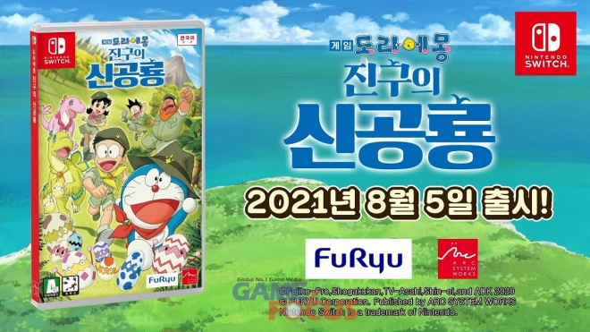 아크시스템웍스 아시아지점이 올해로 50주년을 맞이한 인기 IP '도라에몽'의 최신 극장판 애니메이션, '극장판 도라에몽: 진구의 신공룡'을 FURYU사가 게임으로 개발 및 제작한 액션 어드벤처 '도라에몽 진구의 신공룡'의 Nintendo Switch™ 한국어판을 8월 5일 출시한다. 이에 앞서 한국어 패키지판의 예약 판매가 내일(23일)부터 시작된다.