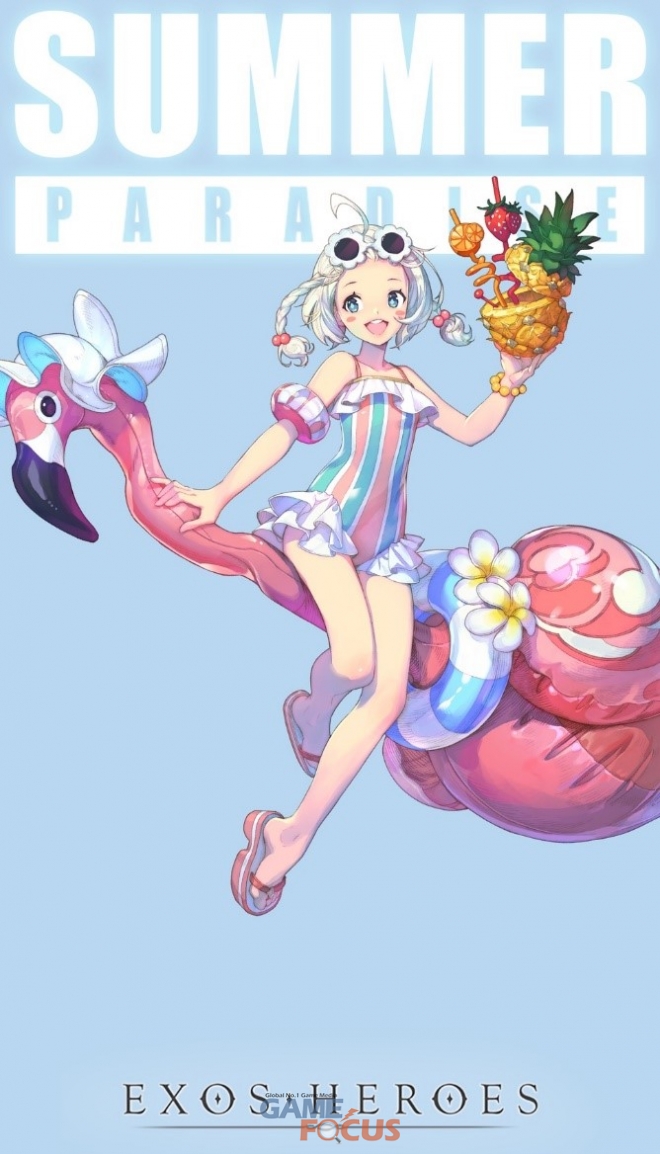 라인게임즈(대표 김민규)는 23일 우주(대표 최동조)가 개발하고 자사가 서비스하는 모바일 RPG '엑소스 히어로즈'에 여름 테마 '썸머 파라다이스'의 첫 번째 페이트코어(영웅 외형 및 스킬 변경 의상) '샤이닝 썸머 - 다나'와 전용 무기 '플라잉 플라밍고'를 공개했다.