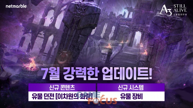넷마블(대표 권영식, 이승원)은 모바일 최초 배틀로얄 MMORPG(다중접속역할수행게임) 'A3: 스틸얼라이브'에 신규 던전 '이차원의 화랑'을 추가하는 등 업데이트를 실시했다고 23일 밝혔다.