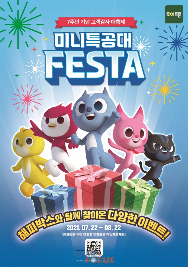 '미니특공대' 7주년 기념 고객감사 축제 '미니특공대 페스타'는 오는 8월 22일까지 공식 홈페이지와 공식 SNS, 오프라인 매장 등에서 진행되며, '슈퍼공룡파워 해피박스'는 토이저러스와 이마트, 쿠팡 등 온라인 종합쇼핑몰과 전국 완구전문매장에서 만나볼 수 있다.