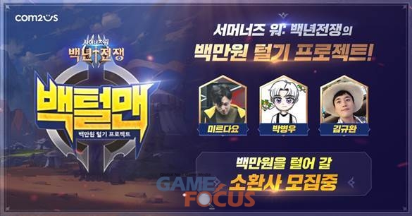 컴투스(대표 송재준, 이주환)는 서머너즈 워: 백년전쟁(이하 백년전쟁)의 친선 대전 프로젝트인 ‘백털맨’의 참여자를 모집한다고 26일 밝혔다.
