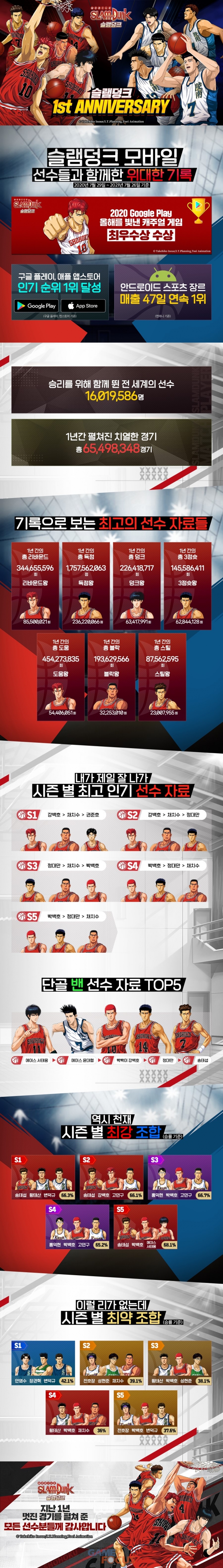디엔에이(DeNA)가 자사에서 서비스하는 모바일 게임 '슬램덩크'의 서비스 1주년을 맞이해 인포그래픽을 공개했다.