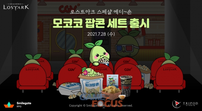 스마일게이트 RPG(대표 지원길)가 CGV와 손잡고 '로스트아크'의 마스코트 '모코코'를 주인공으로 한 '모코코 팝콘 세트'를 출시했다.