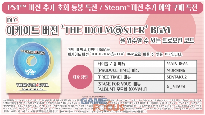 반다이남코 엔터테인먼트 코리아(대표 제랄드 누난)는 PlayStation4, STEAM 플랫폼 아이돌 프로젝트 프로듀스 게임 '아이돌마스터 스탈릿 시즌' 한국어 번역판의 PlayStation4 플랫폼 라이브 게임 체험판을 5일 배포했다.