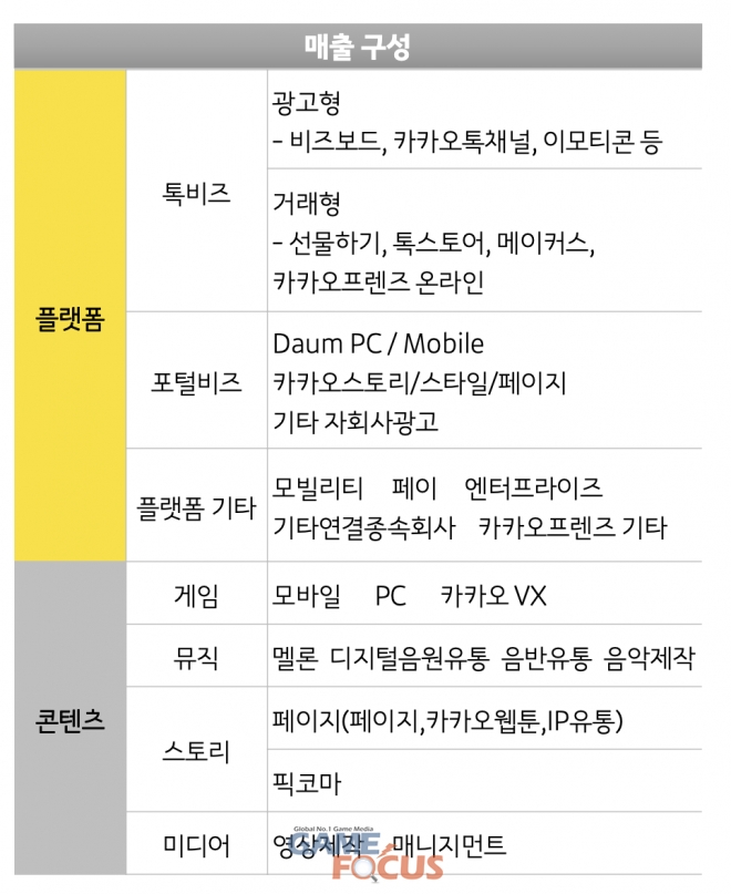 카카오는 지난 상반기 진행된 카카오페이지, 카카오엠, 멜론 3사 합병에 따라 이번 분기부터 콘텐츠 매출 구분을 ▲게임, ▲스토리(픽코마, 카카오엔터테인먼트 스토리 플랫폼 등) ▲뮤직(멜론 플랫폼, 음원 및 음반 유통, 음악 공연 매출), ▲미디어(오리지널 콘텐츠・드라마・영화 등의 영상 제작과 연예매니지먼트 등)로 보다 직관적으로 재분류했다.