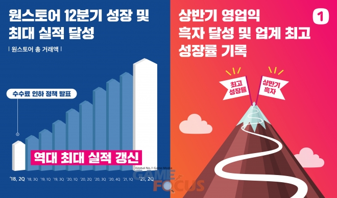 원스토어는 코로나19의 영향과 게임∙콘텐츠 산업의 지속적인 성장으로 앱마켓들의 거래액이 꾸준히 증가하는 와중에도 특히 돋보이는 성장률을 기록하고 있다. 빅데이터 플랫폼 기업 아이지에이웍스가 앱마켓 3사의 거래액을 추정해 발표하는 '모바일인덱스' 기준, 2021년 상반기 원스토어의 성장률은 전년 동기대비 38.3%로, 기타 글로벌 앱마켓의 동기 성장률 11% 대비 약 3.5배에 달하는 성장을 기록했다.