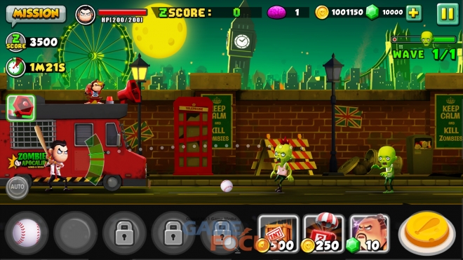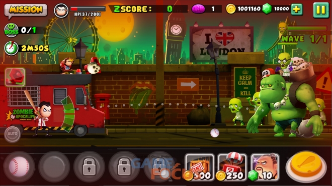 게임을 시작하면 캐릭터와 배트와 공을 선택하고, 자신에게 다가오는 좀비들을 모두 맞춰야 스테이지를 클리어 할 수 있는 디펜스게임이다.