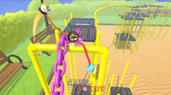 플링 투 더 피니시는 각 2명의 플레이어가 신축성 좋은 로프에 묶여 다채롭고 혼란스러운 장애물 코스를 달리는 게임이다. 의사소통의 능력에 따라 이 로프는, 함께 플레이하는 친구처럼, 게임 플레이에 큰 도움이 될 수도 혹은 가장 큰 장애물이 될 수도 있다. 파트너와 말그대로 한 몸으로 플레이해야 하기 때문에 플링 투 더 피니시는 진정한 협동 게임이다. 로프 활용을 마스터해 장애물에 휘두를 수도 파트너를 난간위로 던져 위기를 모면할 수도 있다. 게임에 익숙해지면 진정한 곡예가 펼쳐진다.