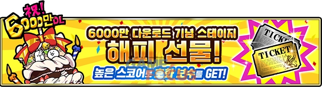 개최 기간 중 '6000만 다운로드 기념 해피 선물!' 스테이지가 등장한다. 스코어 누적으로 보수를 획득할 수 있다.