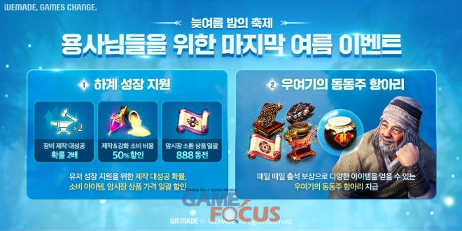 또한, 장비 및 보감무구 강화에 소비되는 비용 50% 할인 및 약재, 장비재료, 승급재료에 사용되는 주요 아이템 할인 혜택을 동시에 누릴 수 있다. 장비 제작 시에는 대성공 확률이 2배 상승한다.
